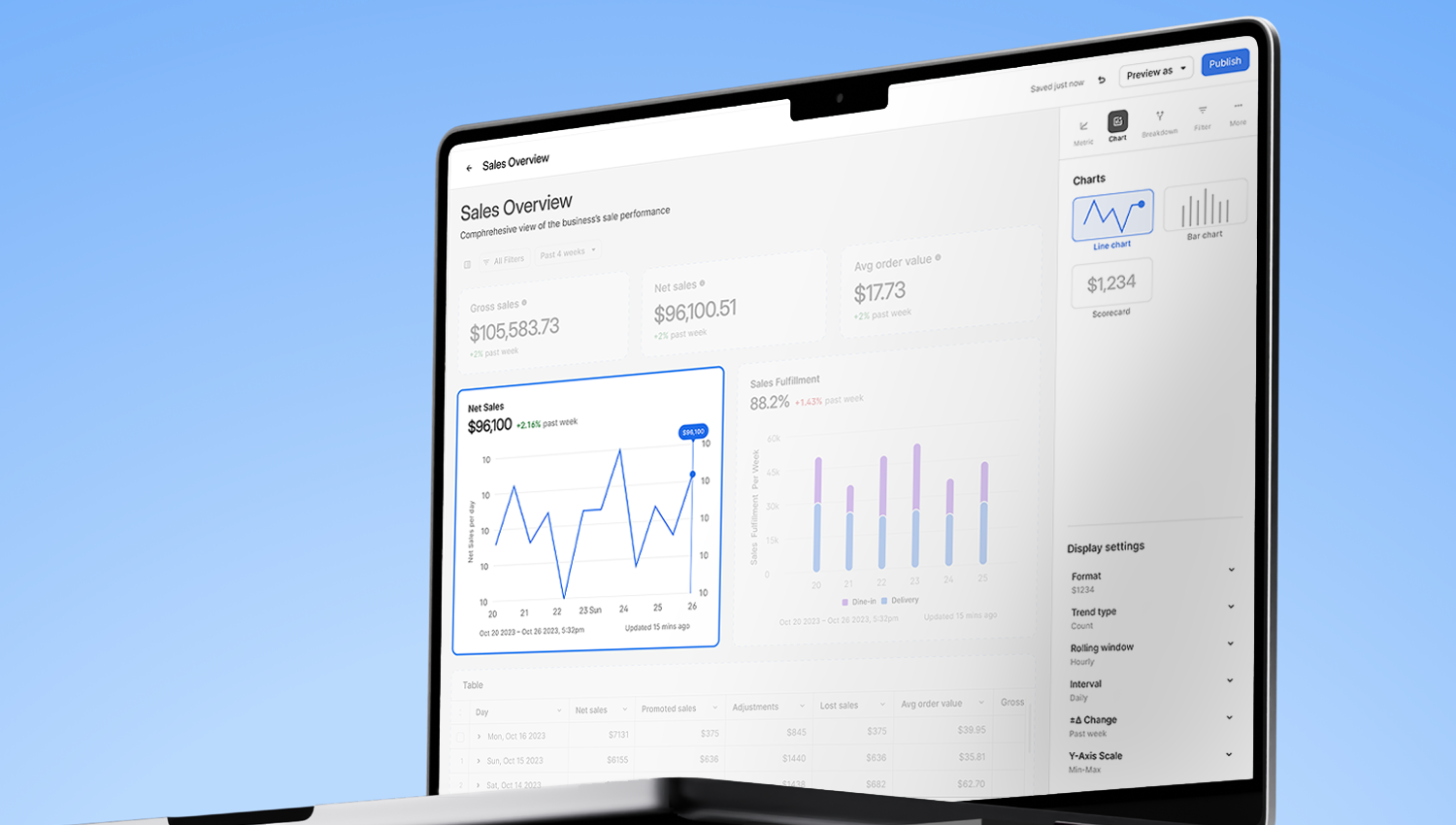 Transforming speed to insights with no-code ease. Developed a dashboard maker that allows internal teams and customers to intuitively create ad-hoc dashboards.