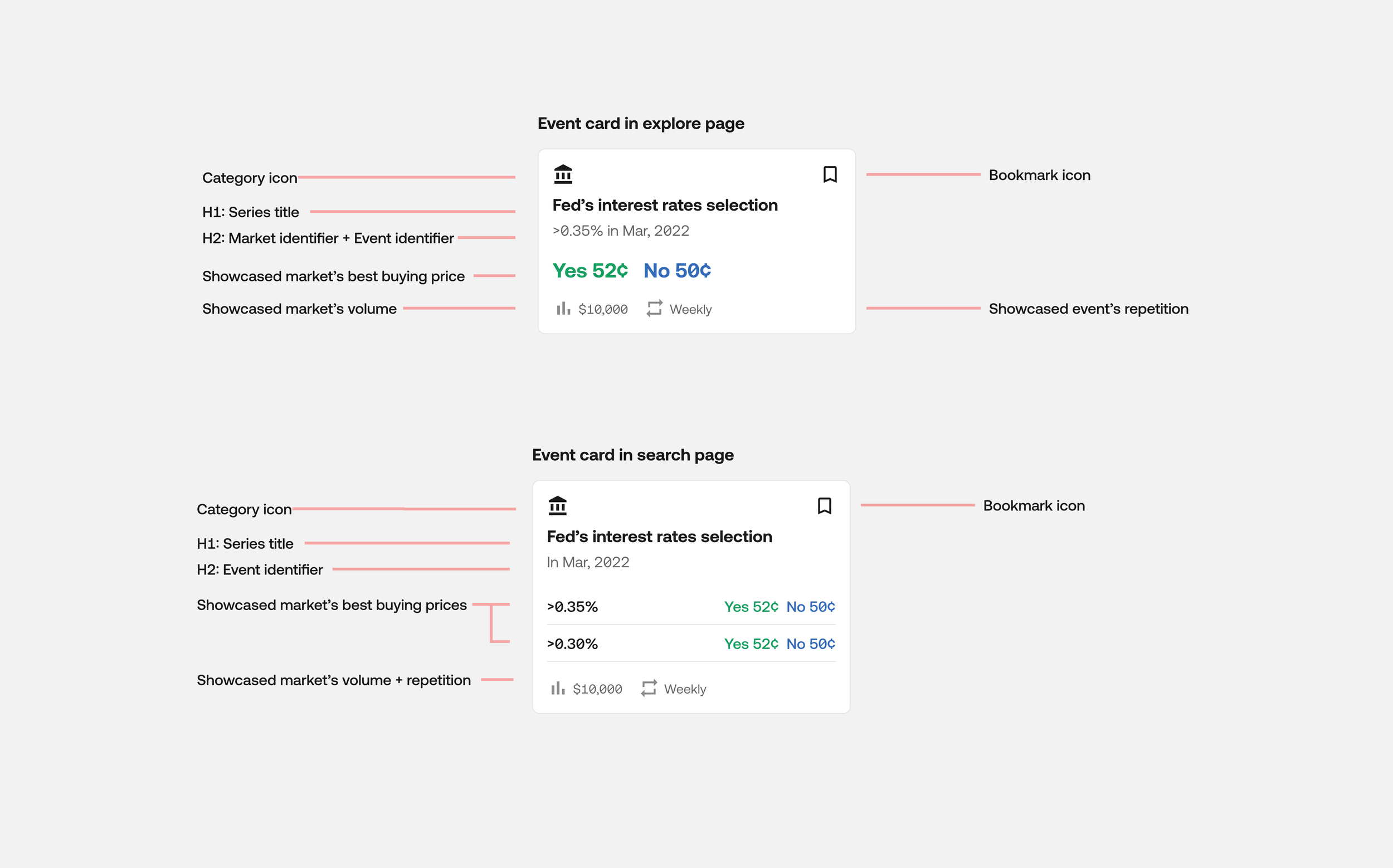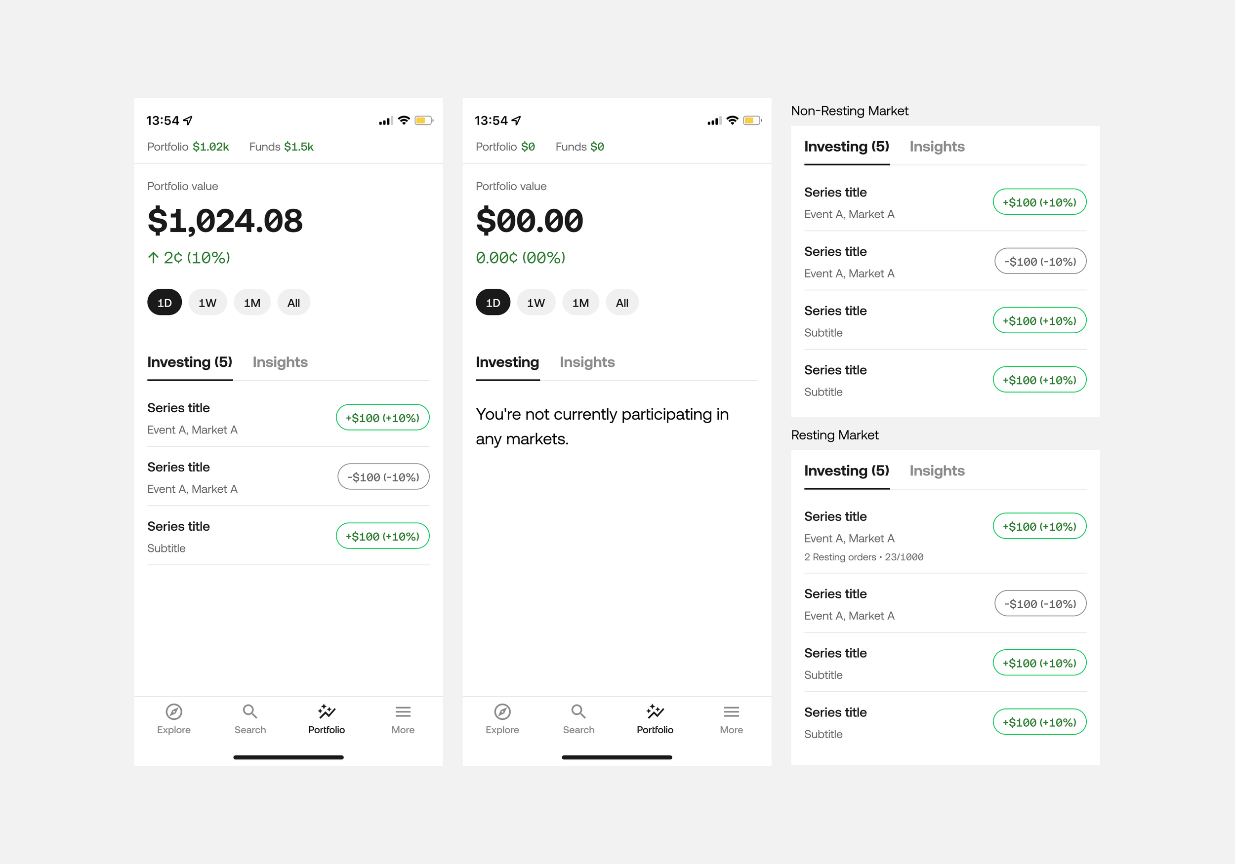 Kalshi initially had mobile app designs but it was outdated. Kalshi underwent a comprehensive design refresh to enhance user understanding of the markets. My task was to translate this initiative into the mobile experience, developing new patterns, components, and user flows to create a seamless and intuitive app.